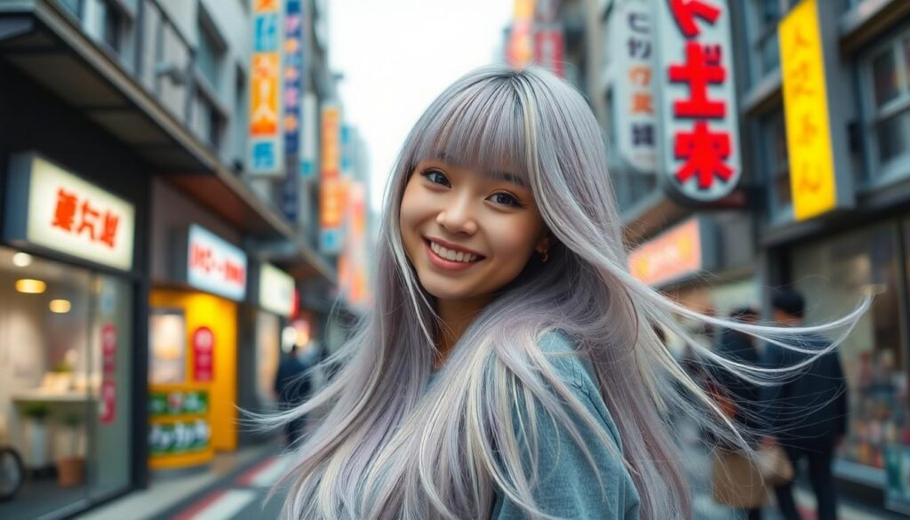 We see Harajuku influence everywhere in Japanese street fashion, especially in bold hair color choices. Pink, blue, purple, and green shades instantly grab attention on Takeshita Street. Anime fans and fashion lovers embrace full-head dyes, while others go with dramatic highlights for a splash of color. Patterns such as stripes and ombré aren’t rare either; some even paint motifs directly onto their hair. Studio stylists in Harajuku district set these trends, helping anyone achieve that trendsetting style.